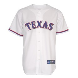 Root for your favorite team, the Texas Rangers, in Majestic’s Home white Replica Jersey. Rangers’ Replica Jersey makes you look like you are an unofficial part of the team.Pay tribute to the Rangers with this replica home jersey from Majestic. Made of 100-percent polyester double-knit, the jersey will have you looking and feeling just like an actual ballplayer, with a button front and authentic decoration and trim around the edges. Plus, the jersey features authentic printed tackle twill application of the team’s name. And as with every Majestic garment, the jersey carries itself with the same qualities–commitment, tenacity, and persistence–as every Major Leaguer who’s ever stolen home, thrown a 100 mph fastball, or batted in the winning run. Made in the U.S., the authentic jersey includes an MLB Genuine Merchandise locker tag and is officially licensed by Major League Baseball.