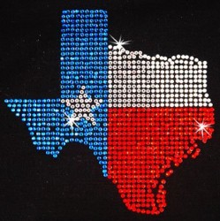 Iron on Hot Fix Rhinestone Motif Design Texas Map Flag