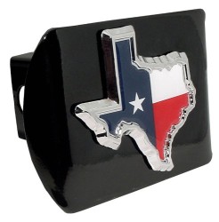 Lonestar State of Texas “Black with Chrome “Red White and Blue Lonestar Flag” State Shape Emblem” Steel Trailer Hitch Cover Fits 2 Inch Auto Car Truck Receiver